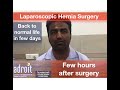 hernia surgery recovery લેપરોસકોપીક હર્નિયા સર્જરી: દર્દી નો અનુભવ Laparoscopic hernia surgery: patient review, Ahmedabad | |